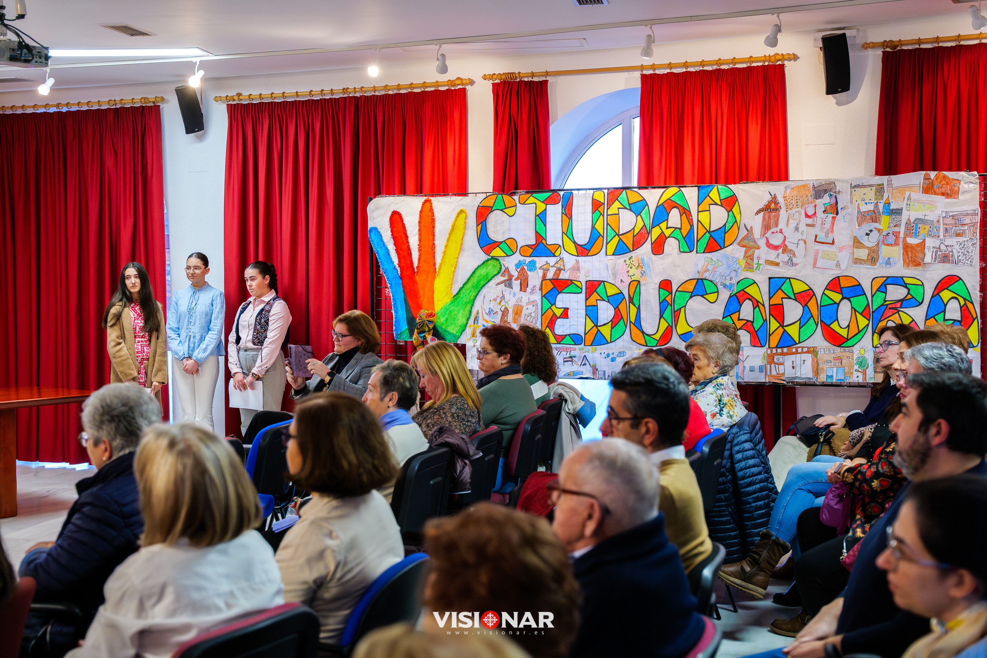 También se ponían en valor los paneles elaborados por alumnado de los colegios con motivo del Día Internacional de la Ciudad Educadora, dando además la oportunidad a la lectura de un trabajo sobre participación infantil por parte de los escolares Raúl, Natalia Fernández, Julia Extremera y Joel Letrado.