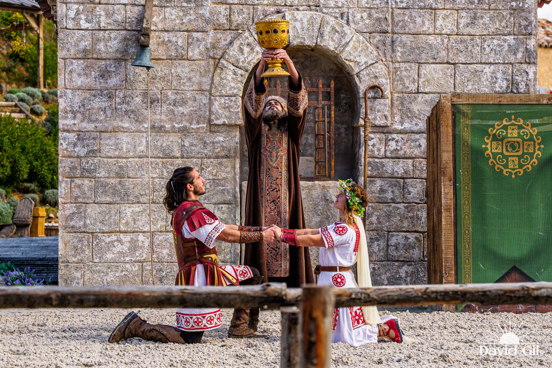 Este espectáculo al aire libre, ambientado en el año 589, nos sumerge en una historia de amor prohibido entre dos mundos enfrentados: una joven romana y un príncipe godo. Todo sucede en torno a una reliquia sagrada y un milagro que marcará el destino de los pueblos. La narrativa, profundamente inspirada en el descubrimiento real del Tesoro enterrado en las tierras de la huerta de Guarrazar, se convierte en una experiencia sensorial donde historia y espectáculo se funden de forma magistral.