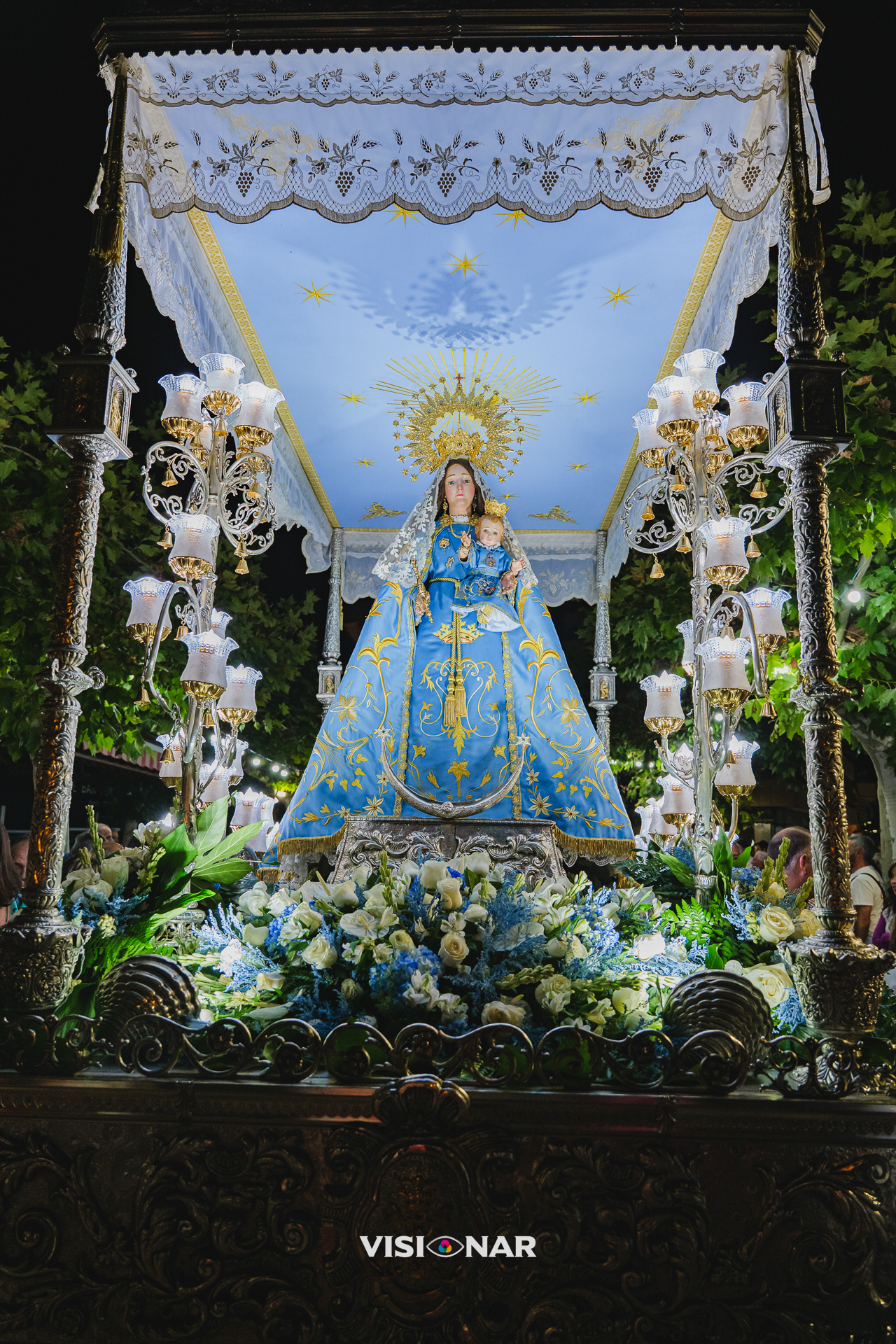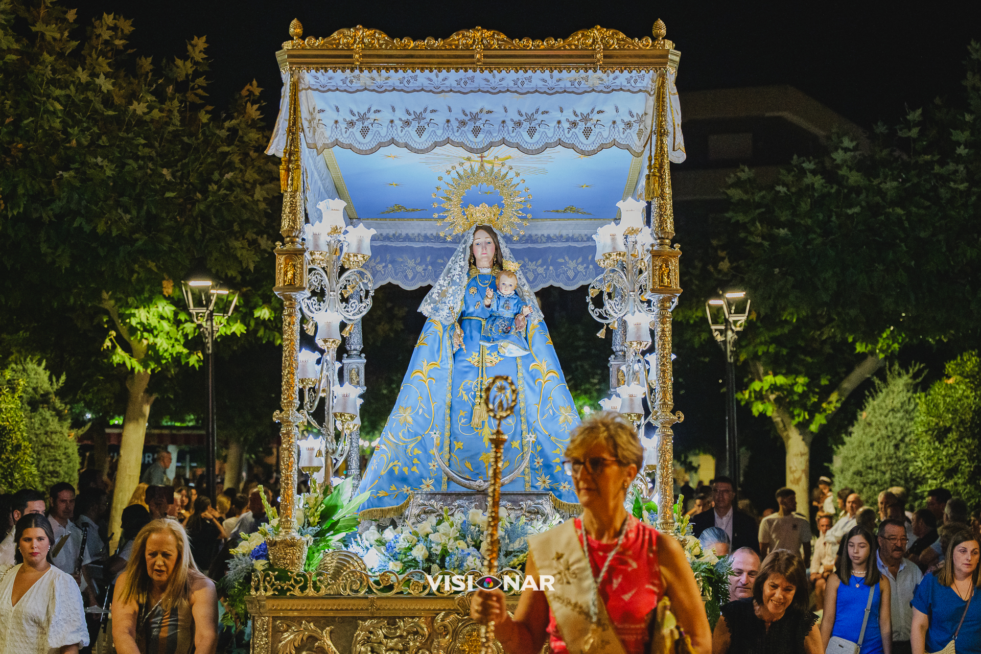 Recibimiento de nuestra patrona la Virgen del Socorro en las Fiestas Patronales de Argamasilla de Calatrava 2024. El saludo de bienvenida en la plaza del ayuntamiento fue a cargo de Virginia Mazoteras, junto con la actuación del Coro Parroquial.